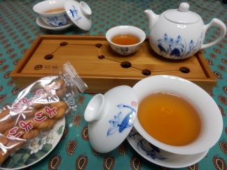 ↑↑↑元旦のスタートは、大好きな茶器でちょっと高価な台湾茶『梨山茶』を中華菓子とともに~emoji茶盤を出すと、やっぱり雰囲気出ますね~vお気に入りの七星茶盤ですemoji