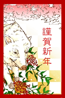 今年は花札がモチーフですが、下絵に選択した画材とスキャナがミスマッチで、繊細な線がまったく取り込めなかったemoji