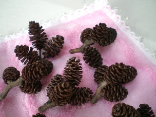 何の木になっていたのか分からなかったけれど、道端に小指の先程の小さい松ボックリみたいなのがいっぱいついた小枝がたくさん落ちてて、夢中で拾ってきました!