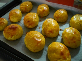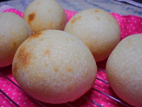 ↑この白くて丸くて可愛いパン作るのに、一次発酵だけで7時間もかかりました。