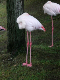 フラミンゴさん、一斉にお昼寝の中に「???」な一羽が!
